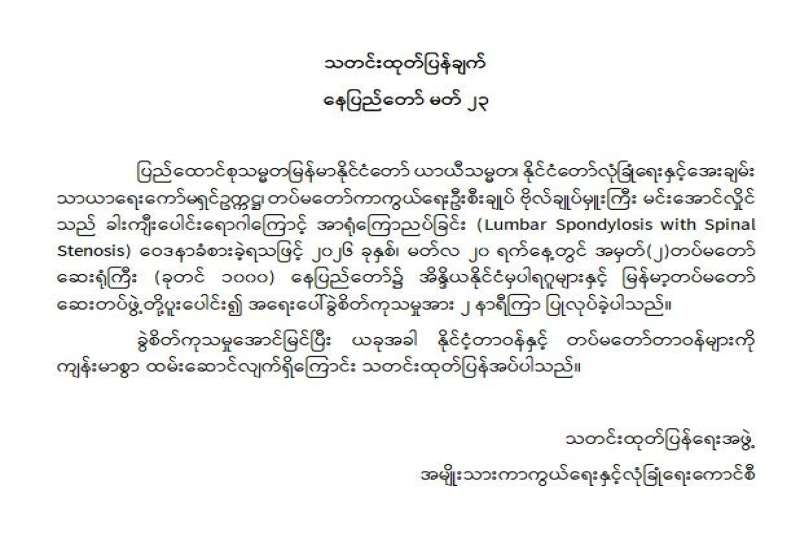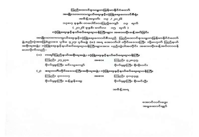 ၁။ အရှေ့အလယ်ပိုင်းပဋိပက္ခကြောင့် ဖြစ်ပေါ်လာနိုင်သည့် စက်သုံးဆီရှားပါးမှုကို ကြိုတင်ကာကွယ်ရန်ရည်ရွယ်၍ စုံ ၊ မ ယာဉ်သုံးစွဲသည့်စနစ်နှင့် စက်သုံးဆီဝယ်ယူသည့်စနစ်တို့ကို သတ်မှတ်ကြေညာခဲ့ပြီးဖြစ်ပါသည်။ ထိုသို့ သတ်မှတ်ကြေညာခဲ့သည့်နည်းတူ နိုင်ငံတော်အစိုးရအနေဖြင့်လည်း စက်သုံးဆီတင်သွင်းရရှိရေးကို နည်းလမ်းမျိုးစုံဖြင့် အတတ်နိုင်ဆုံး ကြိုးပမ်းဆောင်ရွက်လျက်ရှိပါသည်။ လက်ရှိတွင် လုံလောက်သော စက်သုံးဆီအရန်ရှိသော်လည်း အနာဂတ်တွင်ဖြစ်လာနိုင်သော စွမ်းအင်ဆိုင်ရာ စိန်ခေါ်မှုများအတွက် ကြိုတင်ပြင်ဆင်သည့်အနေဖြင့် စက်သုံးဆီသုံးစွဲမှုကို ချွေတာလျှော့ချရန်ရည်ရွယ်ကာ အစိုးရရုံးဌာနများမှ အရာထမ်း၊ အမှုထမ်းများသည် သက်ဆိုင်ရာရုံးဌာနများသို့သွားရောက်ခြင်းမပြုဘဲ မိမိနေထိုင်ရာ နေအိမ်၊ အဆောင်များတွင်သာ ရုံးလုပ်ငန်းဆောင်ရွက်ခြင်းအား ၂၀၂၆ ခုနှစ်၊ မတ်လ ၂၅ ရက်နေ့မှစတင်ပြီး အပတ်စဉ် ဗုဒ္ဒဟူးနေ့တိုင်းဆောင်ရွက်သွားကြရန် သတ်မှတ်ကြေညာလိုက်ပါသည်။ ထိုသို့ သတ်မှတ်ကြေညာခြင်းသည် စက်သုံးဆီချွေတာရန်ဖြစ်သည့်အားလျော်စွာ အစိုးရရုံးဌာနများမှ အရာထမ်း၊ အမှုထမ်းများအနေဖြင့် အဆိုပါရက်တွင် တာဝန်မှအပ ခရီးသွားလာမှုမပြုရန်နှင့် ယာဉ်သုံးစွဲမှုမပြုကြရန်ဖြစ်ပါသည်။