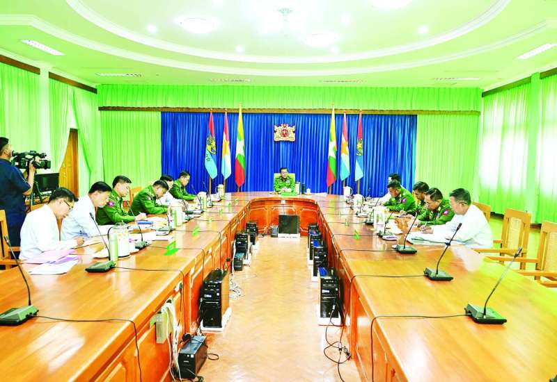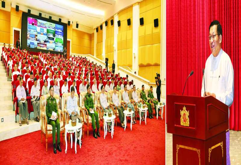 ပြည်ထောင်စုသမ္မတမြန်မာနိုင်ငံတော် ယာယီသမ္မတ နိုင်ငံတော်လုံခြုံရေးနှင့် အေးချမ်းသာယာရေးကော်မရှင်ဥက္ကဋ္ဌ ဗိုလ်ချုပ်မှူးကြီး မင်းအောင်လှိုင်က နိုင်ငံတော်အစိုးရ၏ ၂၀၂၁ ခုနှစ်မှ ၂၀၂၅ ခုနှစ်အတွင်း နိုင်ငံတော်ဖွံ့ဖြိုးတိုးတက်စေရေး ဆောင်ရွက်ခဲ့မှုနှင့်ပတ်သက်၍ ပြန်လည်သုံးသပ်ဆွေးနွေးမှာကြားခြင်းအား ယနေ့မွန်းလွဲပိုင်းတွင် နေပြည်တော်၊ အမျိုးသားကာကွယ်ရေးနှင့် လုံခြုံရေးကောင်စီရုံး၊ သဘင်ဆောင်ခန်းမ၌ ကျင်းပပြုလုပ်သည်။