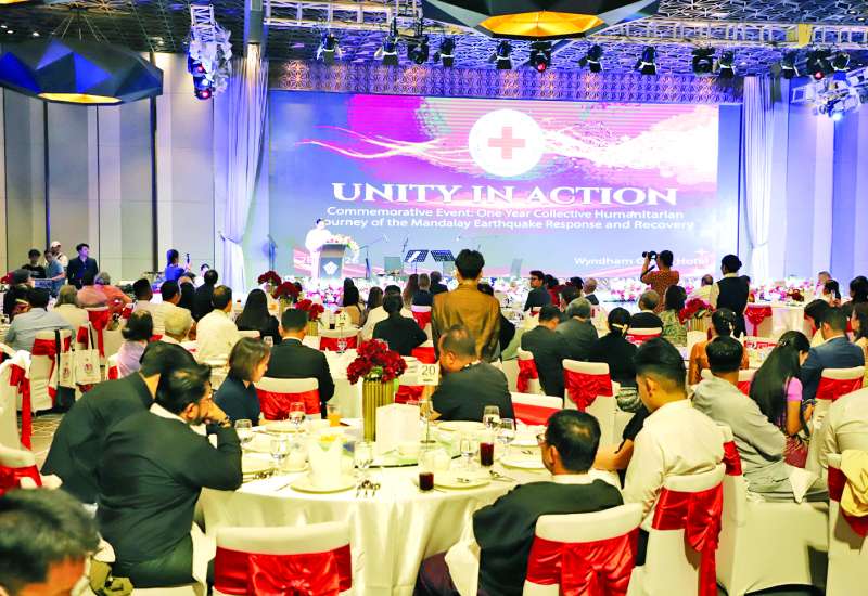 မန္တလေးငလျင်ကြီး တစ်နှစ်ပြည့်အထိမ်းအမှတ် Unity In Action အခမ်းအနားကို မတ် ၂၈ ရက် ညနေပိုင်းတွင် ရန်ကုန်မြို့ရှိ Wyndham Grand Hotel ၌ ကျင်းပသည်။