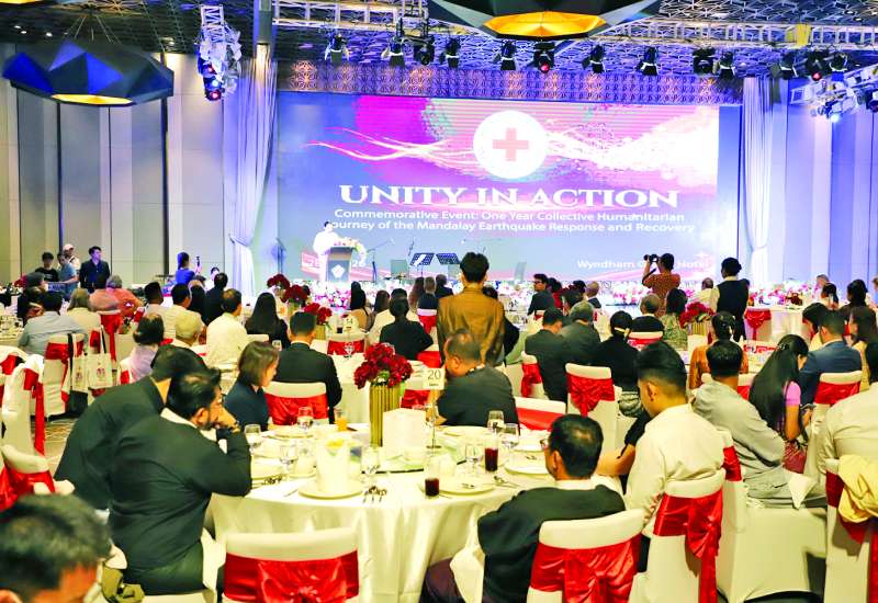 မန္တလေးငလျင်ကြီး တစ်နှစ်ပြည့်အထိမ်းအမှတ် Unity In Action အခမ်းအနားကို မတ် ၂၈ ရက် ညနေပိုင်းတွင် ရန်ကုန်မြို့ရှိ Wyndham Grand Hotel ၌ ကျင်းပသည်။